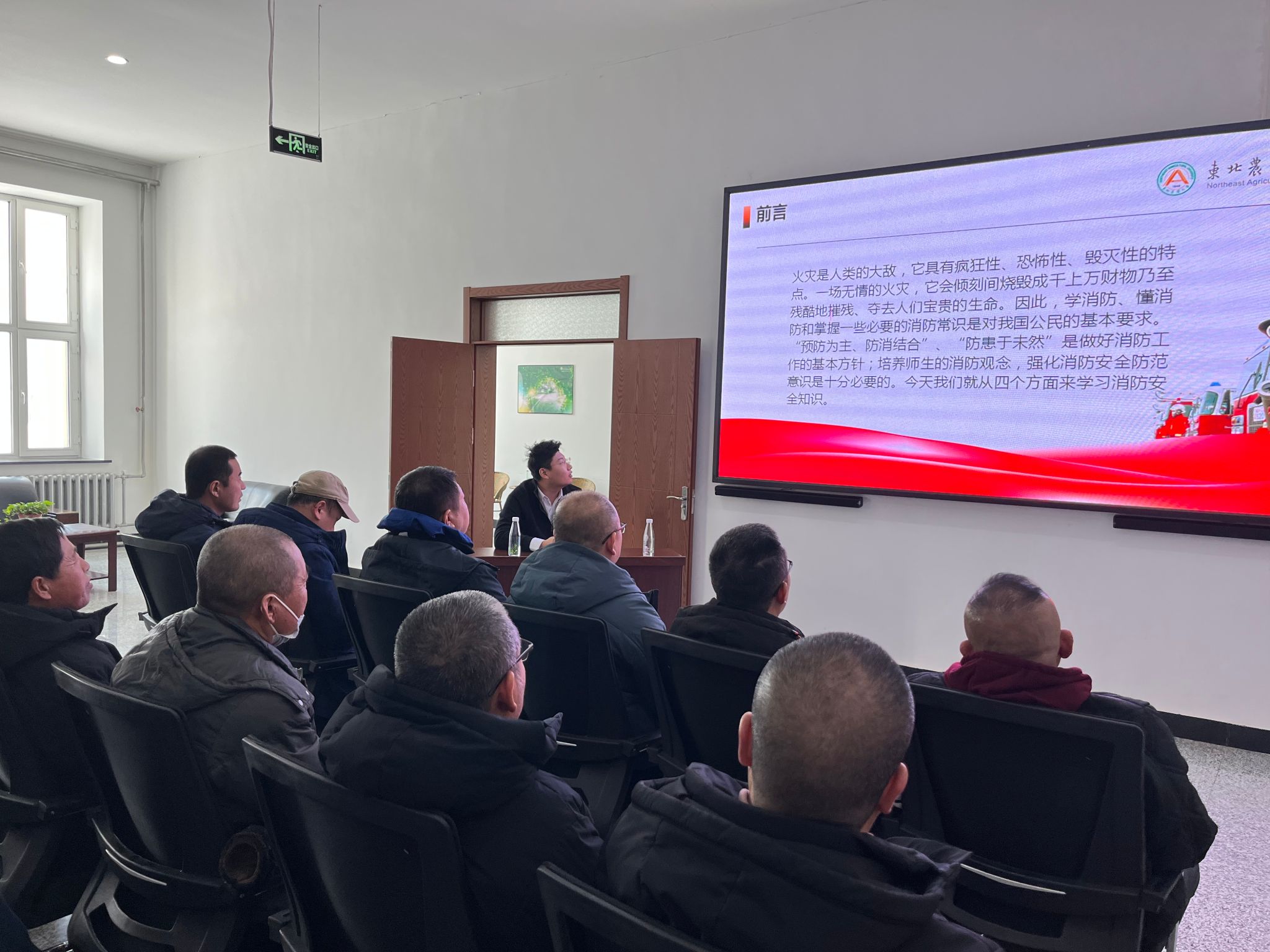 为深入学习贯彻省教育厅关于“重大事故排查整治2023行动”部署要求,贯彻落实《东北农业大学学习培训三年行动(2023-2025年)实施方案》《东北农业大学强化管理三年行动(2023-2025年)实施方案》工作要求,强化教职工安全意识,提高安全防范实操能力,12月5日,实验实习与示范中心在阿城基地开展消防安全培训及演练活动,实验实习与示范中心全体教职工及临时工作人员参加此次培训演练活动。活动邀请保卫处消防科科长王爱众,科员刘浩东进行消防专题培训。