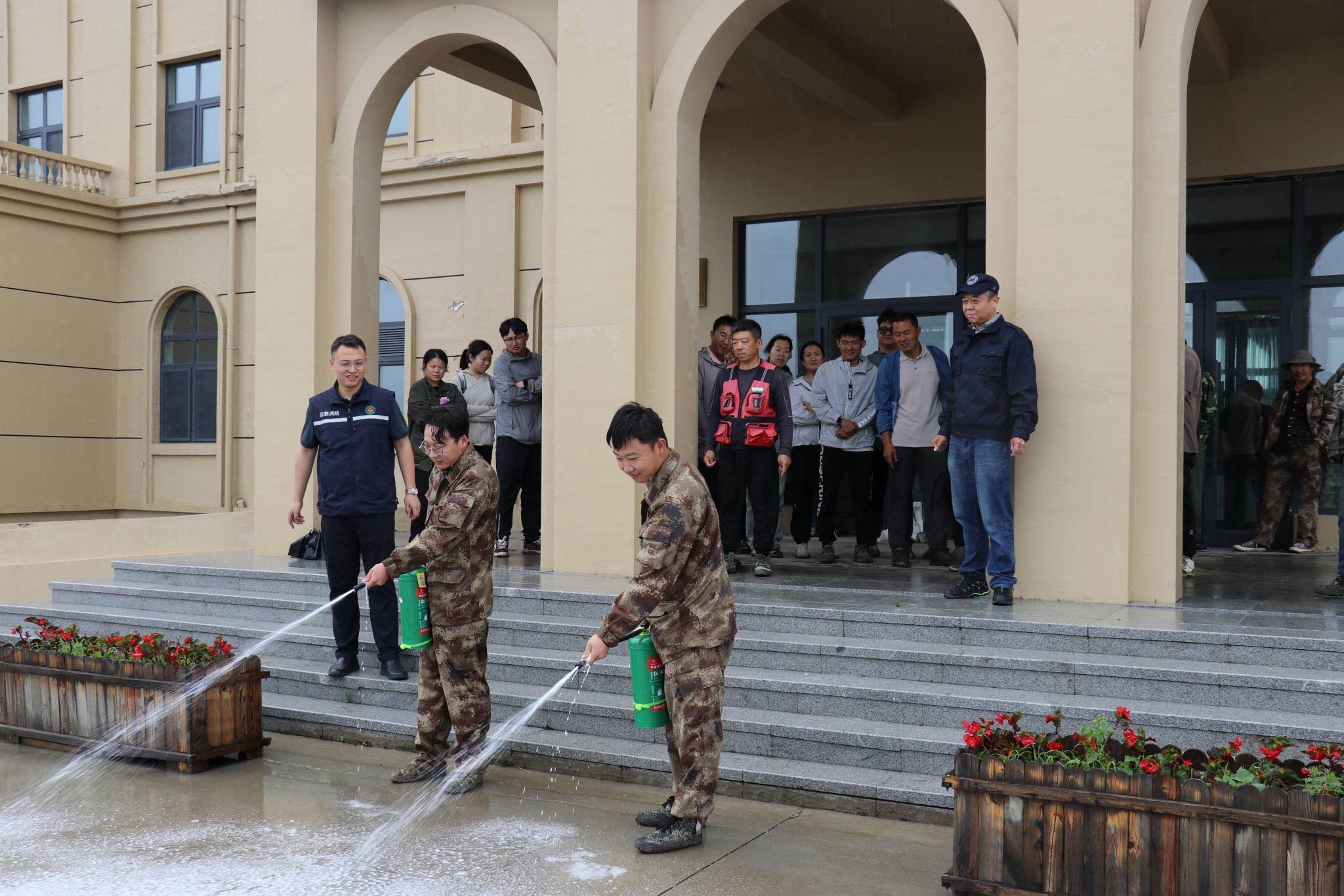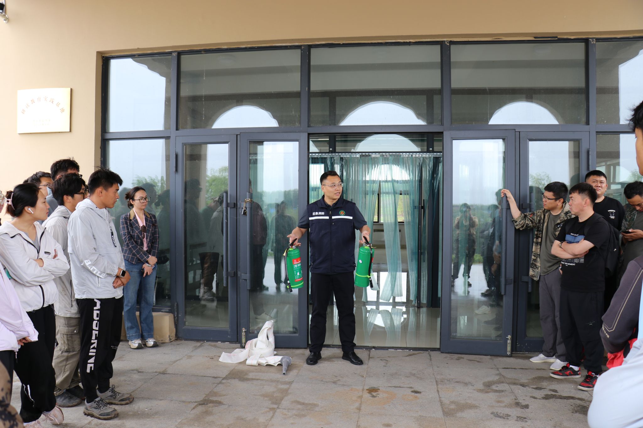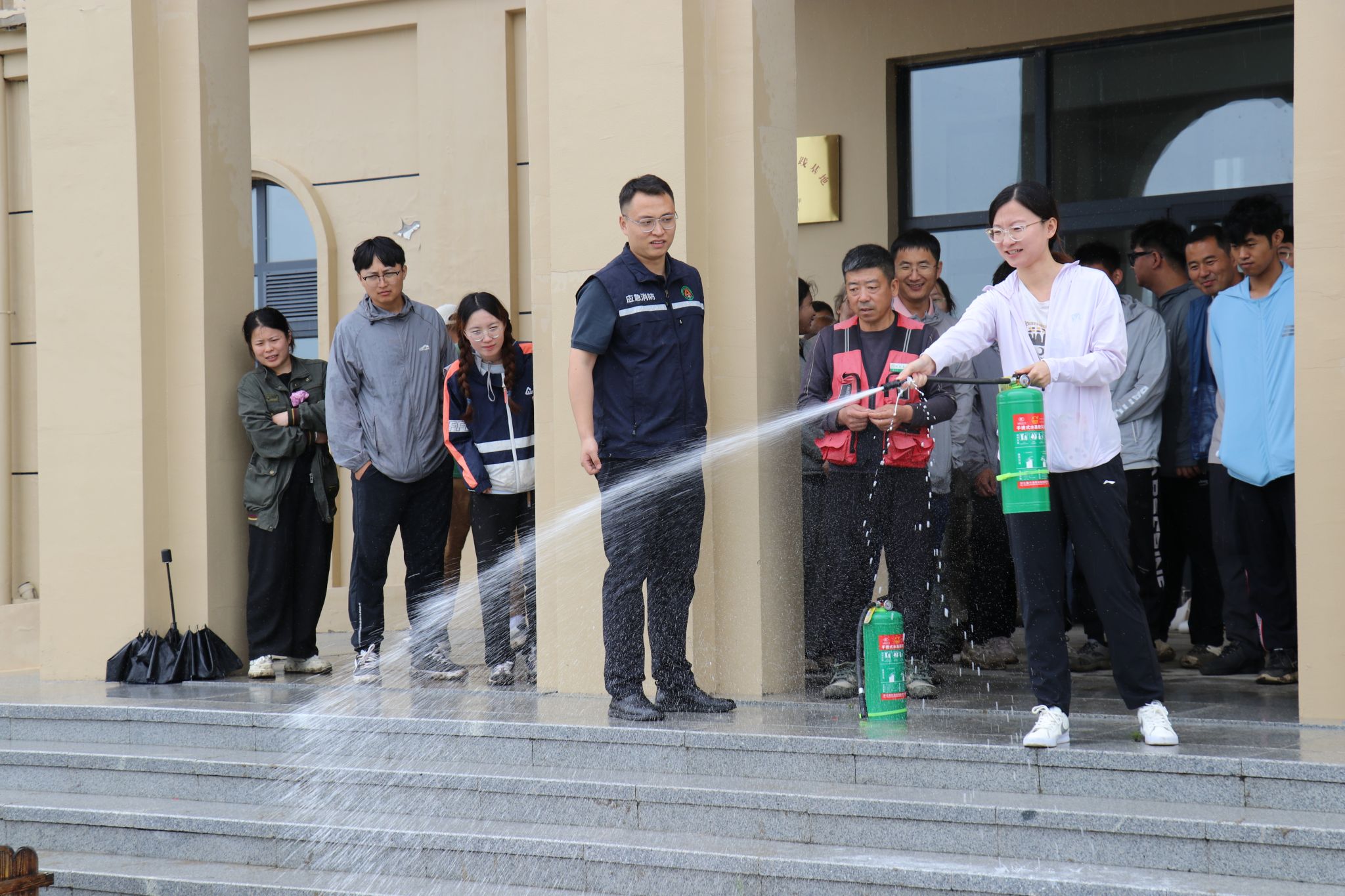 吴智衡现场讲解了灭火器和消防水带的使用方法及扑救初起火灾注意事项。师生员工在实操演练中进一步掌握消防设施器材的使用要领,在切身体验中积累了应对消防紧急情况的经验。