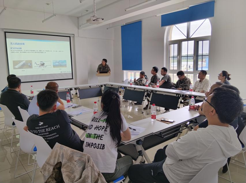 培训中,向阳基地管理科时启冬详细讲解了农业无人机的基本构造、动力系统、电池和充电器的使用及保养、无人机飞行原理与整机检查、飞行安全与作业流程等。全体培训人员在室外观看了无人机驾驶示范操作,包括设备的组装、调试、飞行器的安全事项、无人机规范飞行、航线、姿态模式、对尾悬停等。